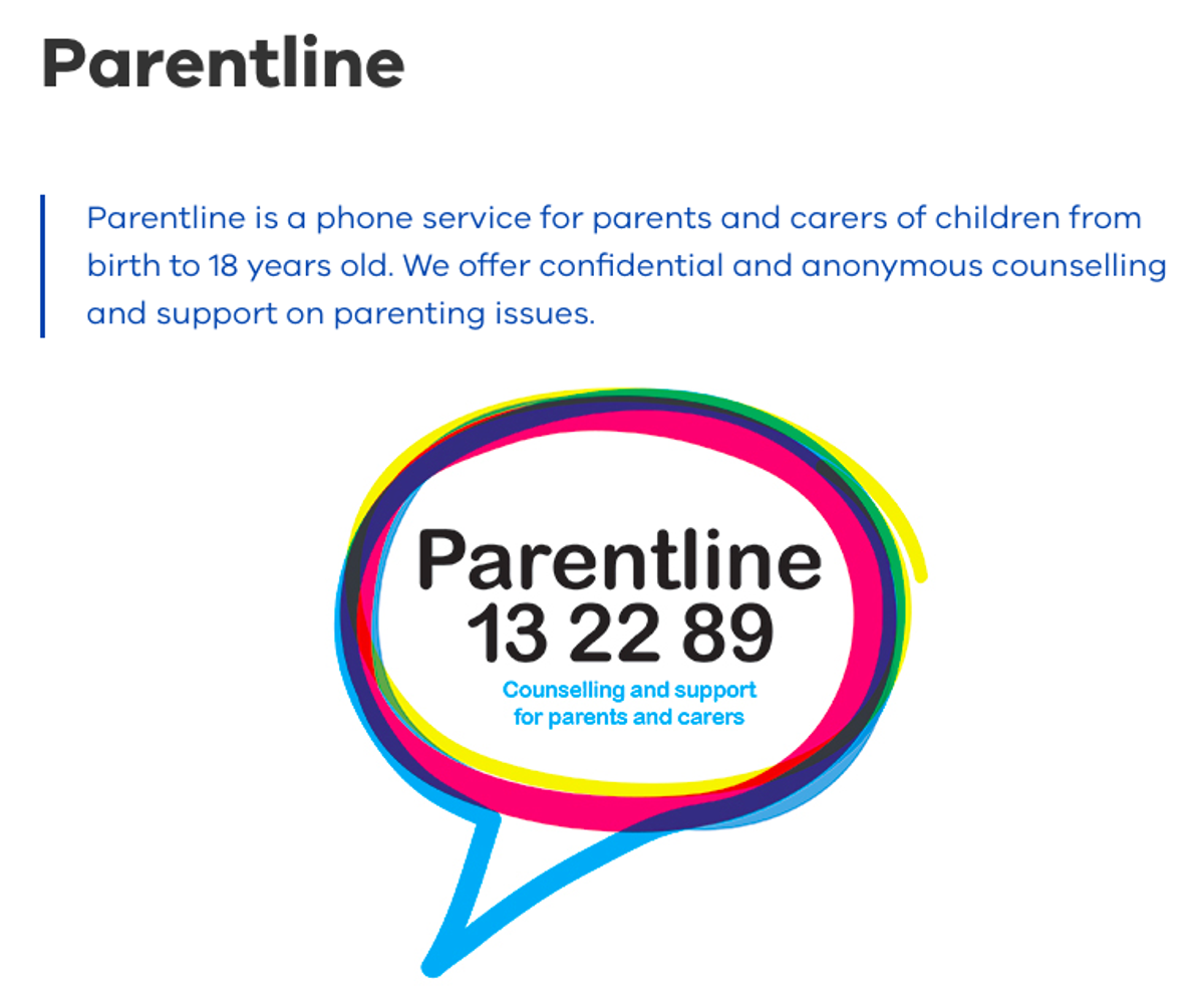 Parent line is a free confidential and anonymous counseling and support service for parents on parenting issues.