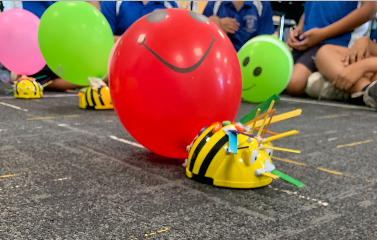 Last week in Grades Three to Six the students had to attach a balloon to a BeeBot and customise it so their balloon would not be popped by another group. They were required to create an algorithm (a series of steps) for their BeeBot to stay in a selected area for two minutes. This was an engaging activity that allowed students to use their problem-solving skills in an exciting way. In Grades Prep to Two the students learnt that an algorithm is a series of instructions. The students created their own algorithm on how they get ready for school and then explored creating algorithms on BeeBots.