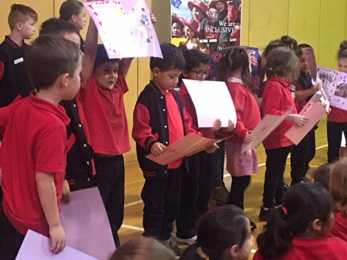 We've been busy! With Athletics, Mothers Day and excursions and lots of learning we are working on achieving our goals and developing our skills. Students have tried new things and moved outside of their comfort zones. Thanks to our parents who have supported us with these extra curricula activities. It was such a lovely day having many parents come to Ath's Day, so many lovely mums at our Mother's Day afternoon tea and Wendy Bell for coming with us to the Gruffalo.