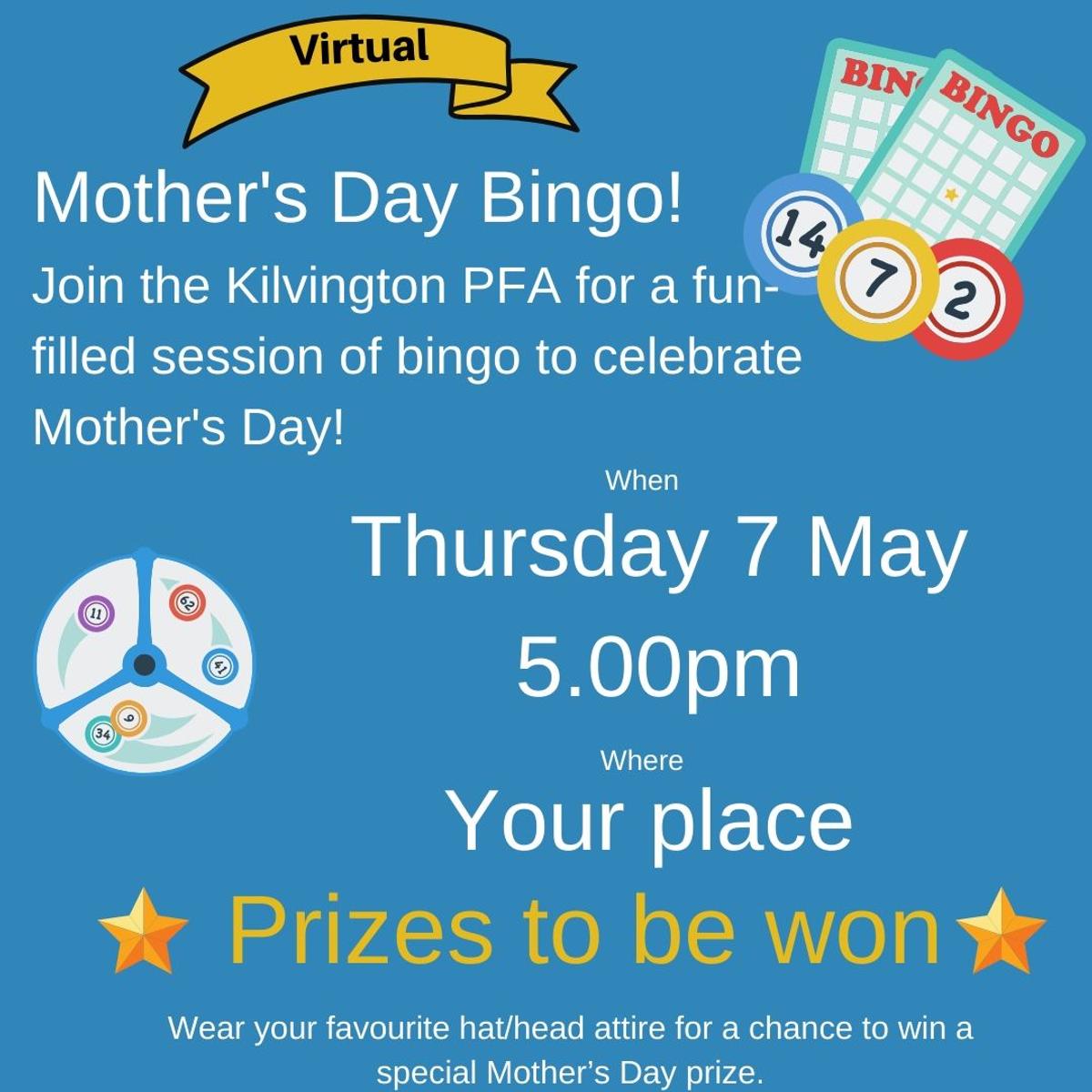 Join the Kilvington PFA for a fun-filled session of BINGO on Thursday 7 May from 5.00 - 6.00pm.