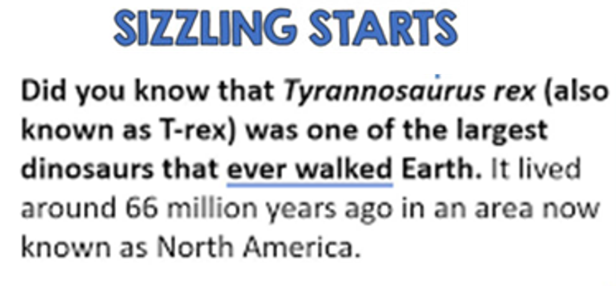 We are learning to write sizzling starts for our information reports.