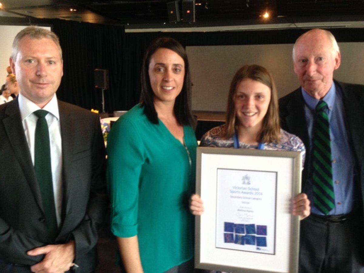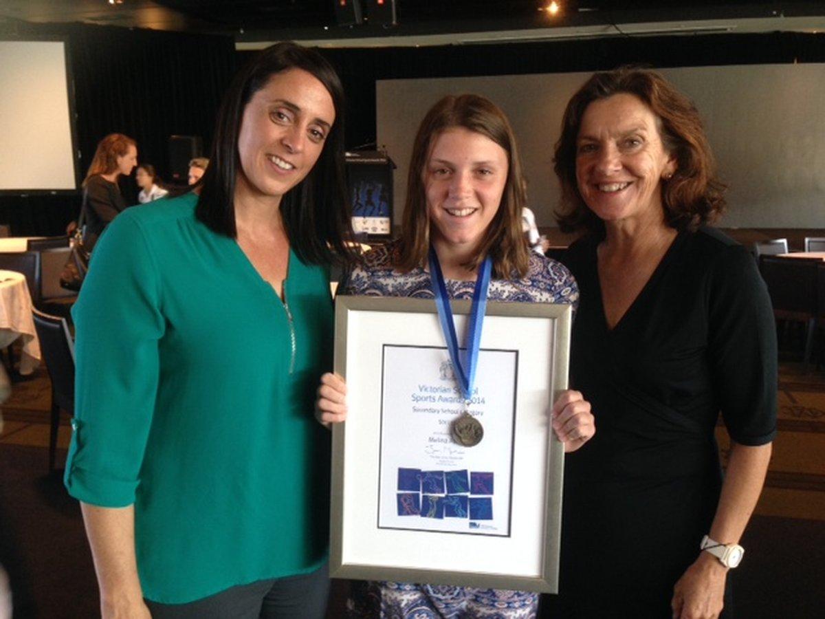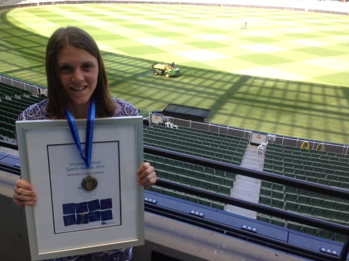 Melina Ayres(Year 10) on receiving a Soccer Award at the Victorian School Sports Awards 2014 held on Tuesday 10 March at the MCG.