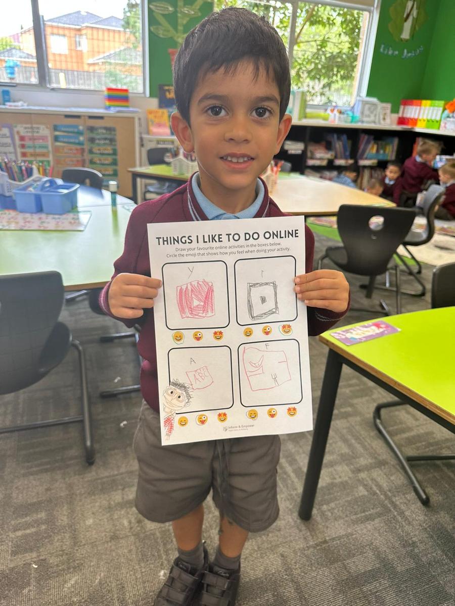 This week the students in Prep used the Inform and Empower resources to help them think about caring for technology. The discussed washing hands prior to using a device, holding devices with two hands, not eating near devices, leaving devices in a safe place and sitting comfortably when using devices.