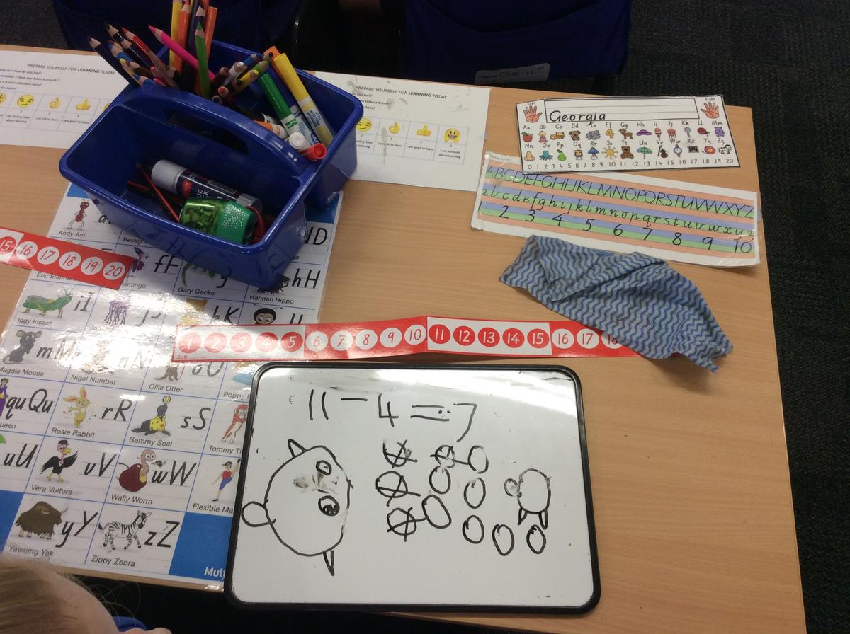 In Maths, the Preps have had the opportunity to participate in addition and subtraction activities and use different strategies such as count on from the biggest number or count back from the biggest number on a number line and combining parts to make a whole number and partition a whole number to solve problems. In addition, the Preps have represented the problem in a variety of ways, for example in a drawing, using a ten frame, number line and writing the number sentence.