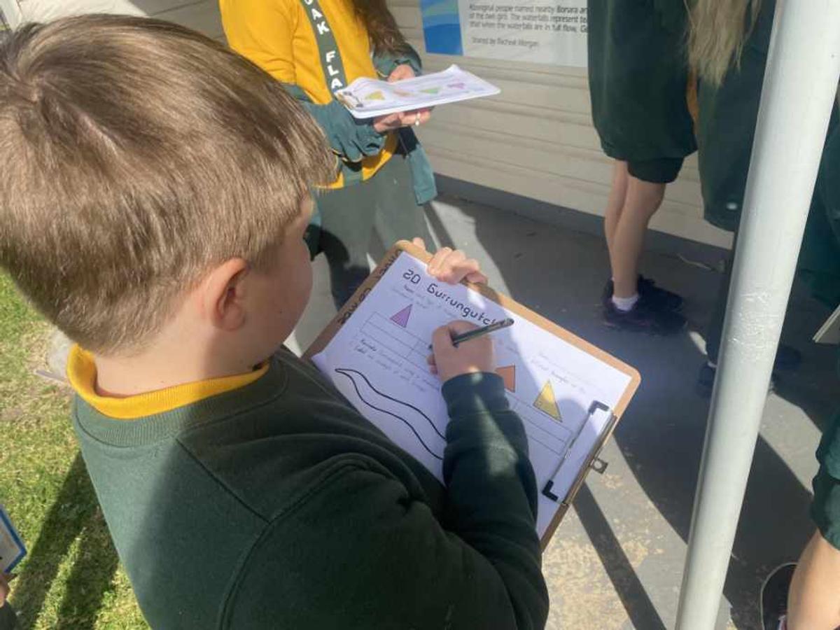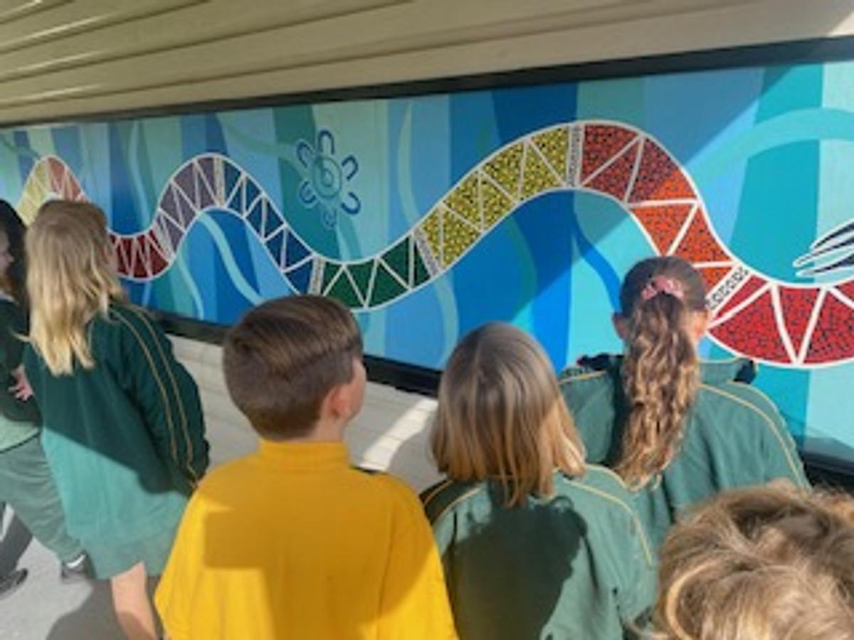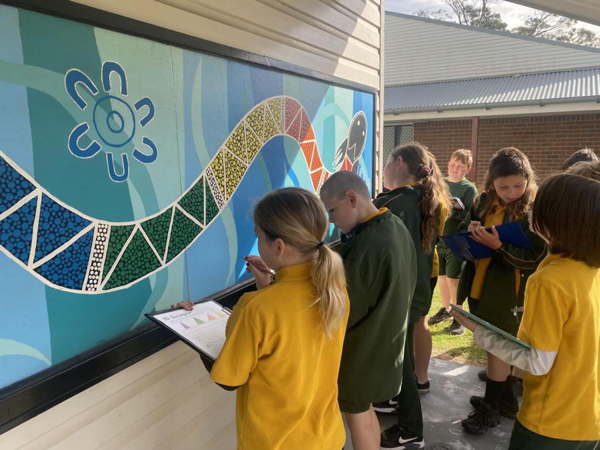 On Thursday, students from Preschool to Year 6 explored the Dharawal story of Gurrungutch the Eel. Our stunning mural of Gurrungutch was created by former teacher and Yuin woman, Racheal Morgan and the Mudjingaal group and features on our sports shirts. Students also took time to explore different Dreaming stories including Gurangaty and Gurangatch versus Mirragang. To support our whole school focus on mathematics, students participated in learning activities around Gurrungutch with a numeracy focus. Preschool and Kindergarten explored the colours and shapes in our Gurrungutch mural with Kindergarten students completing shape graphs. Stage 1 had a position focus where students followed and created maps of Gurrungutch’s journey. Stage 2 students solved number and word problems involving measurement linked to Gurrungutch’s travels. Year 5 students identified and tallied the different types of triangles in the Gurrungutch mural and then recreated a picture of Gurrungutch, ensuring they included the four types of triangles at least 4 times each! And Year 6 created timelines of Gurrungutch’s journey. It was brilliant seeing students so engaged in their learning and making links to culture.