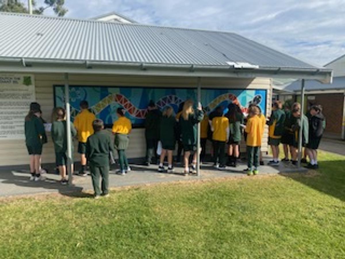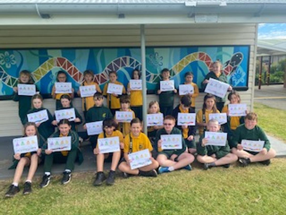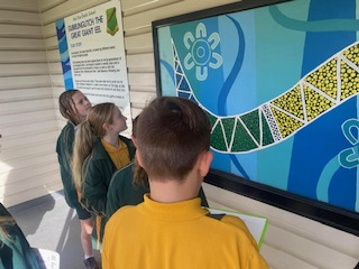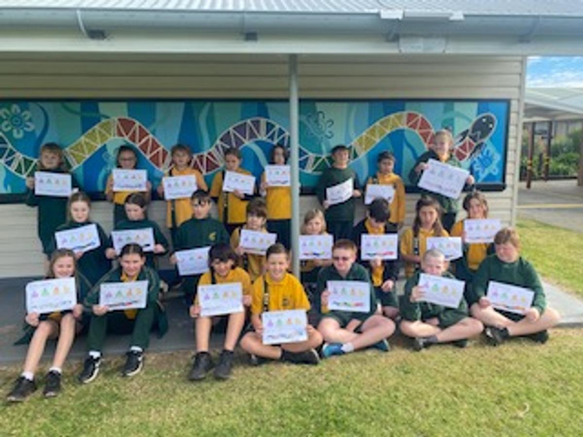 On Thursday, students from Preschool to Year 6 explored the Dharawal story of Gurrungutch the Eel. Our stunning mural of Gurrungutch was created by former teacher and Yuin woman, Racheal Morgan and the Mudjingaal group and features on our sports shirts. Students also took time to explore different Dreaming stories including Gurangaty and Gurangatch versus Mirragang. To support our whole school focus on mathematics, students participated in learning activities around Gurrungutch with a numeracy focus. Preschool and Kindergarten explored the colours and shapes in our Gurrungutch mural with Kindergarten students completing shape graphs. Stage 1 had a position focus where students followed and created maps of Gurrungutch’s journey. Stage 2 students solved number and word problems involving measurement linked to Gurrungutch’s travels. Year 5 students identified and tallied the different types of triangles in the Gurrungutch mural and then recreated a picture of Gurrungutch, ensuring they included the four types of triangles at least 4 times each! And Year 6 created timelines of Gurrungutch’s journey. It was brilliant seeing students so engaged in their learning and making links to culture.