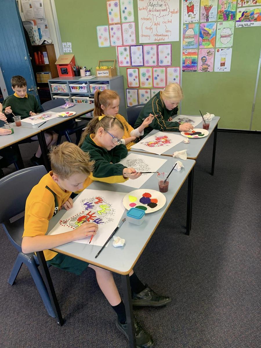 On Wednesday, we held our whole school celebration. It began with a very touching smoking ceremony conducted by Uncle Richard Campbell. Following this, students participated in rotational activities, which were run and assisted by Uncle Richard and Emmaly Davis from Gumaraa, Jason Wilkins, Maiquilla Brown, and Dru-Ann and Kiara Ingram. Students learned and played Indigenous games including a target game from the Torres Strait called mer kolap and a ball game from Mornington Island called pukamitjal. Students explored art works of traditional and contemporary Indigenous artists including Clifford Possum Tjapaltjarri and Emily Kame Kngwarreye. Each student then created a piece of art inspired by these works. Students participated in the Fishing and Lyrebird dances with Gumaraa in the hall, and the teachers also joined! Some lucky students also got to do Shake a Leg. A highlight was story telling where students connected with the earth and listened to Jason Wilkins share about his culture and totems. They also shared stories with Maquilla Brown from Indigenous artists. Our students were so excited to learn about and experience culture. Following the activities, we shared a picnic lunch with families and our students enjoyed their delicious NAIDOC cupcakes provided by the canteen. At the end of the day we held our NAIDOC Week Assembly where we showed a video created by OFPS students and heard our beautiful choir perform. We would like to acknowledge and congratulate our outstanding Aboriginal student leadership team who ran the assembly with distinction, as well as our future leaders who contributed.
