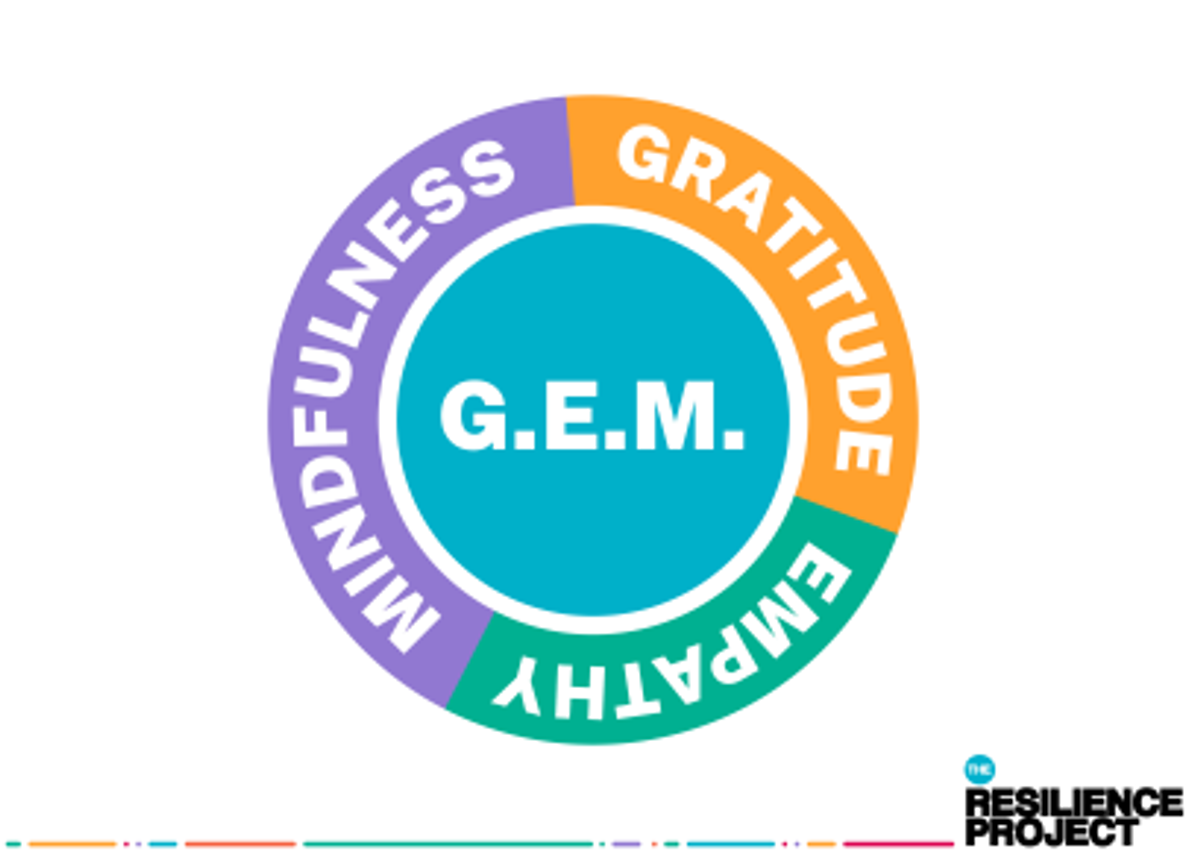 The Resilience Project program focuses on three key pillars proven to cultivate positive emotion; Gratitude, Empathy and Mindfulness (GEM).
